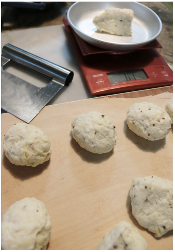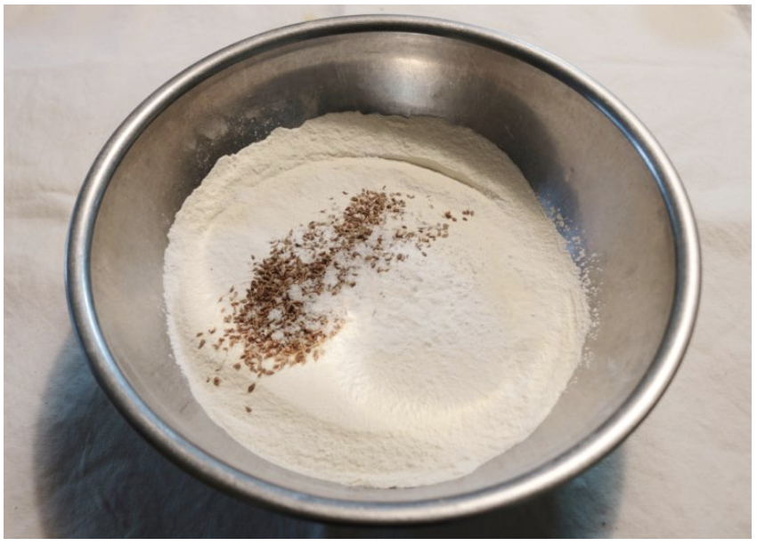 ボールに入っているのは強力粉、ベーキングパウダー、アニス、塩。