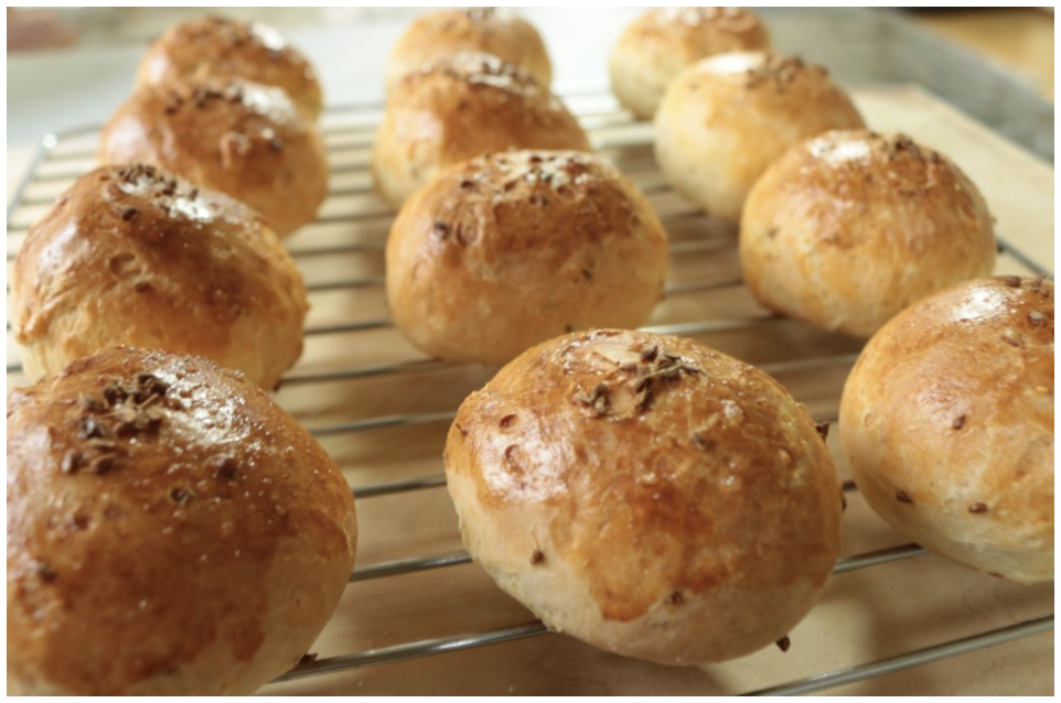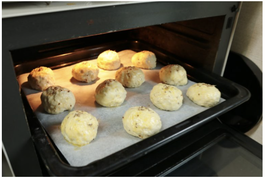 焼き上がったパンは丸くて、おいしそうなこげ色でした。